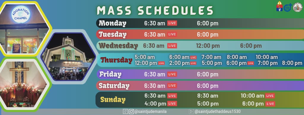 Thursday Cut-Off Time: 11am (for 12nn and 2pm mass) 4pm (for 5pm to 6:30am Fri Mass)